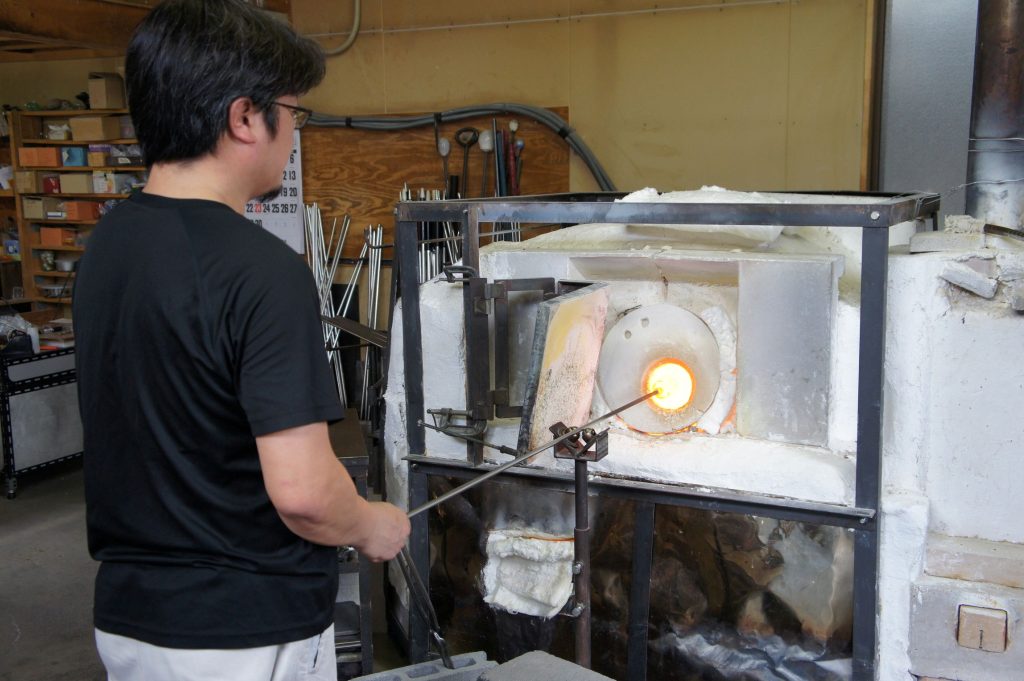 ご主人の寺西将樹さんは長野県生まれ。東京造形大学を卒業後、グラススタジオインヨコハマを経て独立し、数々のクラフト展に入選。