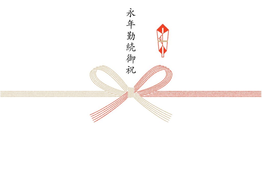 永年勤続表彰は社内行事とはいえ、会社としての公式な贈答にあたるため、のし紙をかけることで場が引き締まります。