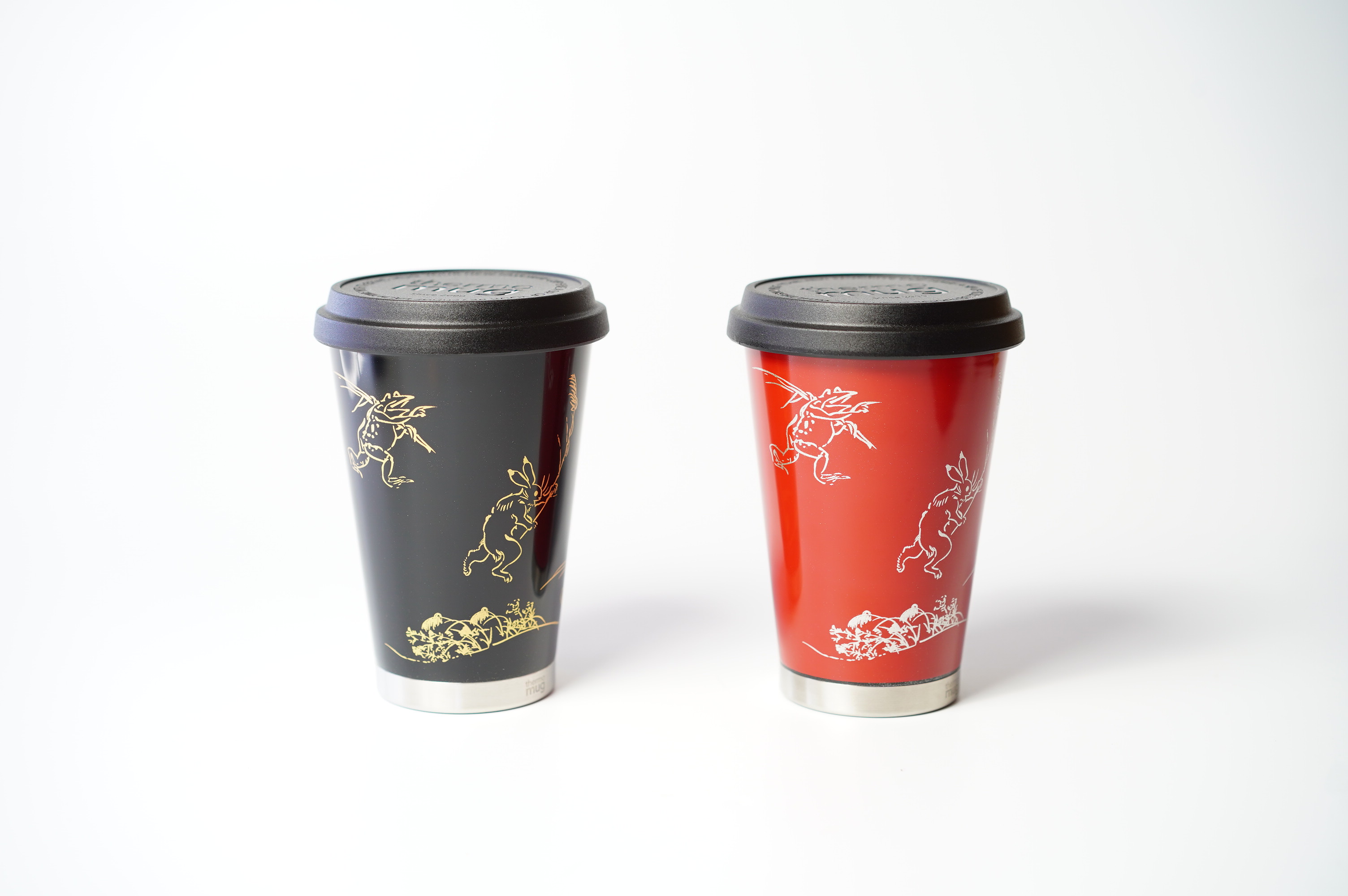 土直漆器 漆塗りモバイルタンブラー【鳥獣戯画】 黒